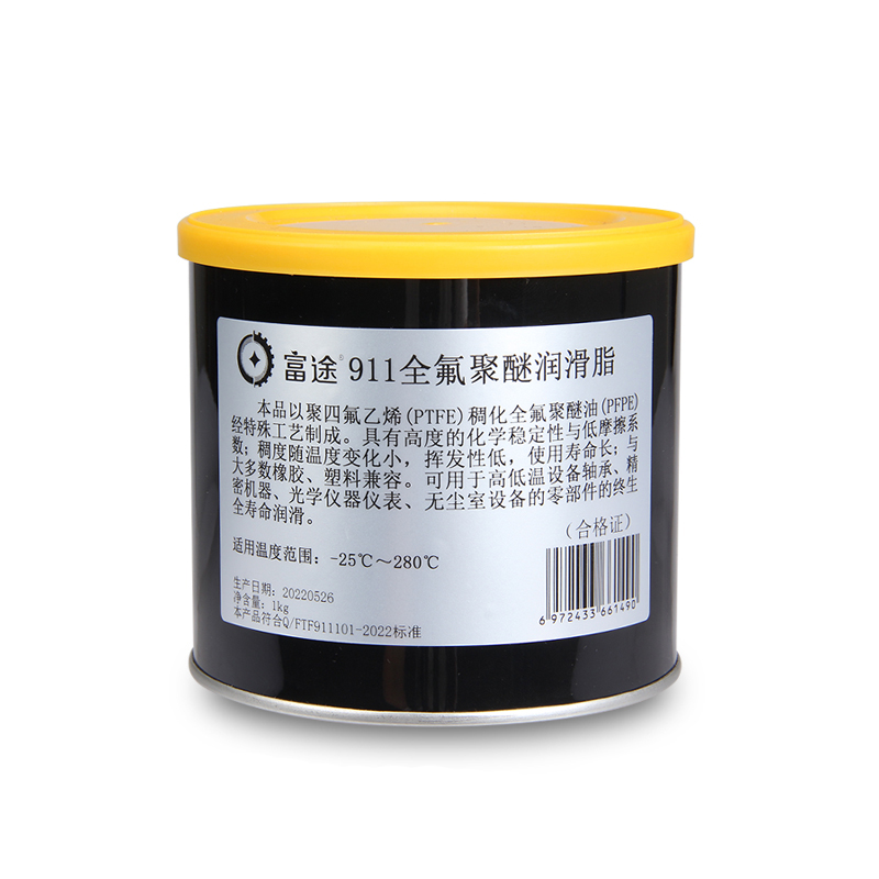 FOTU®富途®911以聚四氟乙烯(PTFE)稠化高度化學(xué)穩(wěn)定性的全氟聚醚油(PFPE),并添加特種抗腐蝕添加劑,經(jīng)特殊工藝精制而成。